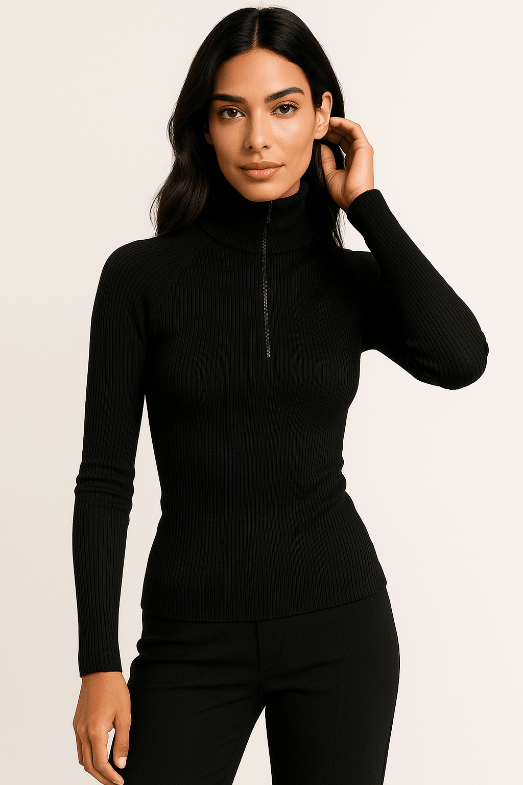 Zana Zip Turtleneck Ribbed Knit Top