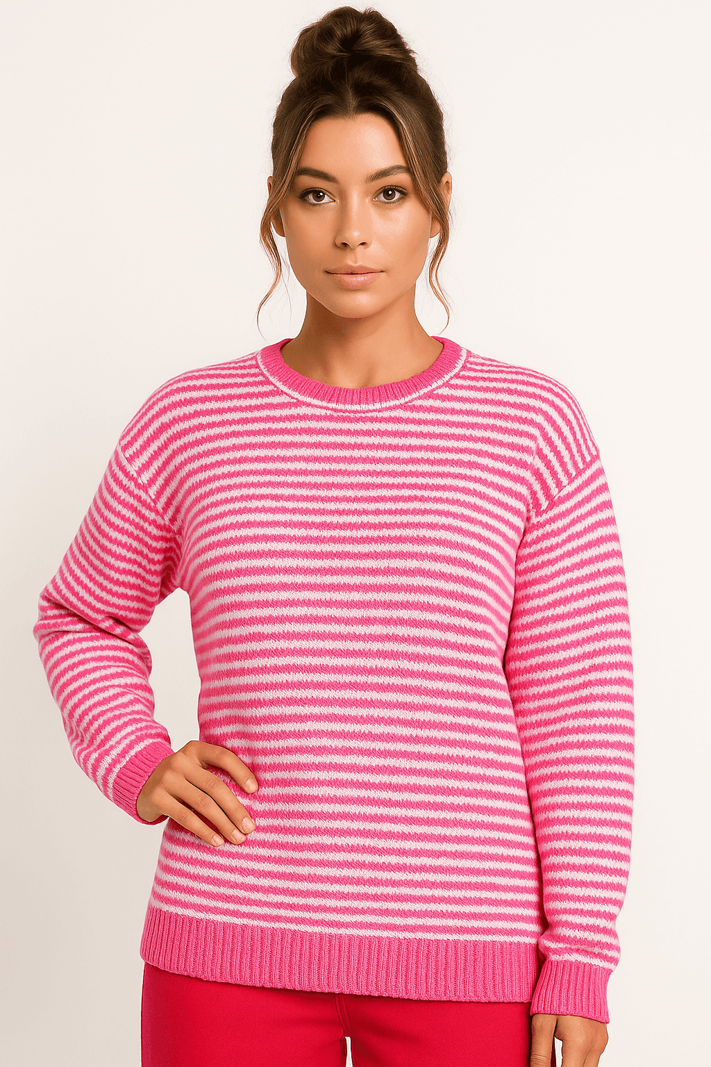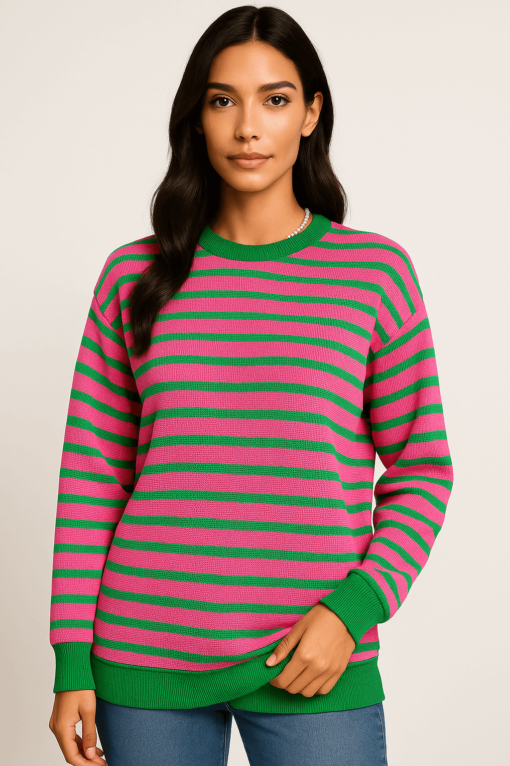 Rose Stripe Drop Shoulder Long Sleeve Top