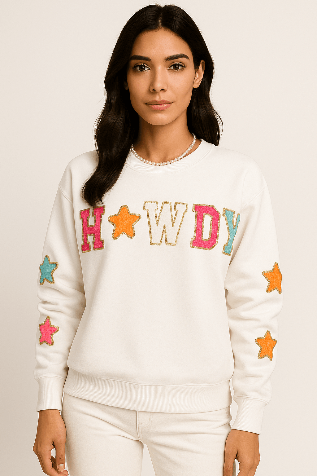 White 'Howdy' Glitter Patch Graphic Sweatshirt